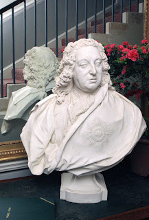 Below, the reproduction of Chantrey’s marble copy of a bust of Thomas Coke, first Earl of Leicester (1697-1759) of the Sixth Creation. created by Louis Francoise Roubilliac (1705-1762). Both busts were sculpted to stand among the large collection of classical busts acquired by Thomas Coke and displayed at Holkham.