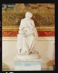 The lovely portrayal of Dorothea Jordan was commissioned from Chantrey by King William IV and completed in 1834. It has been displayed in Buckingham Palace since 1980. Mrs. Jordan, a leading actress of her day, was the long-time mistress of William IV when he was Duke of Clarence and bore him ten children, known by the surname FitzClarence.