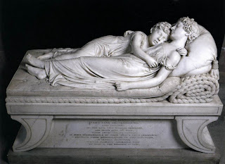 The Sleeping Children, 1817, above, in the Litchfield Cathedral, was commissioned by the widowed mother of the two dead girls, Mrs. Ellen-Jane Woodhouse Robinson. Most observers find it the finest of Chantrey’s works.