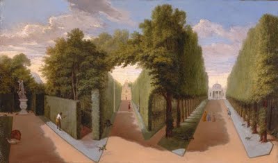 At right is an 18th century view of the allees of Chiswick’s gardens with the Bagnio as the focal point of the central walkway. At the end of the right path is a small temple Lord Burlington built as another part of his formal garden, and still remains. It is pictured at the end of this post.Palladio’s La Rotunda (left) in the Veneto Region of Italy is a prime example of his work, a direct influence on Burlington, Kent, Campbell and many others who soon championed their own versions of Palladianism.