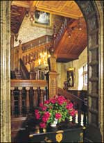 The newer wing of the house, built in the 1870’s contains many outstanding features in woodworking, plaster designs, lighting and furnishings. If you look at the pictures in the magazine article, it is almost possible to think of yourself sitting in one of the comfortable armchairs, waiting for tea or reading one of the 3,500 books in the library. The cantilevered staircase pictured at left was carved by estate workers of local wood.