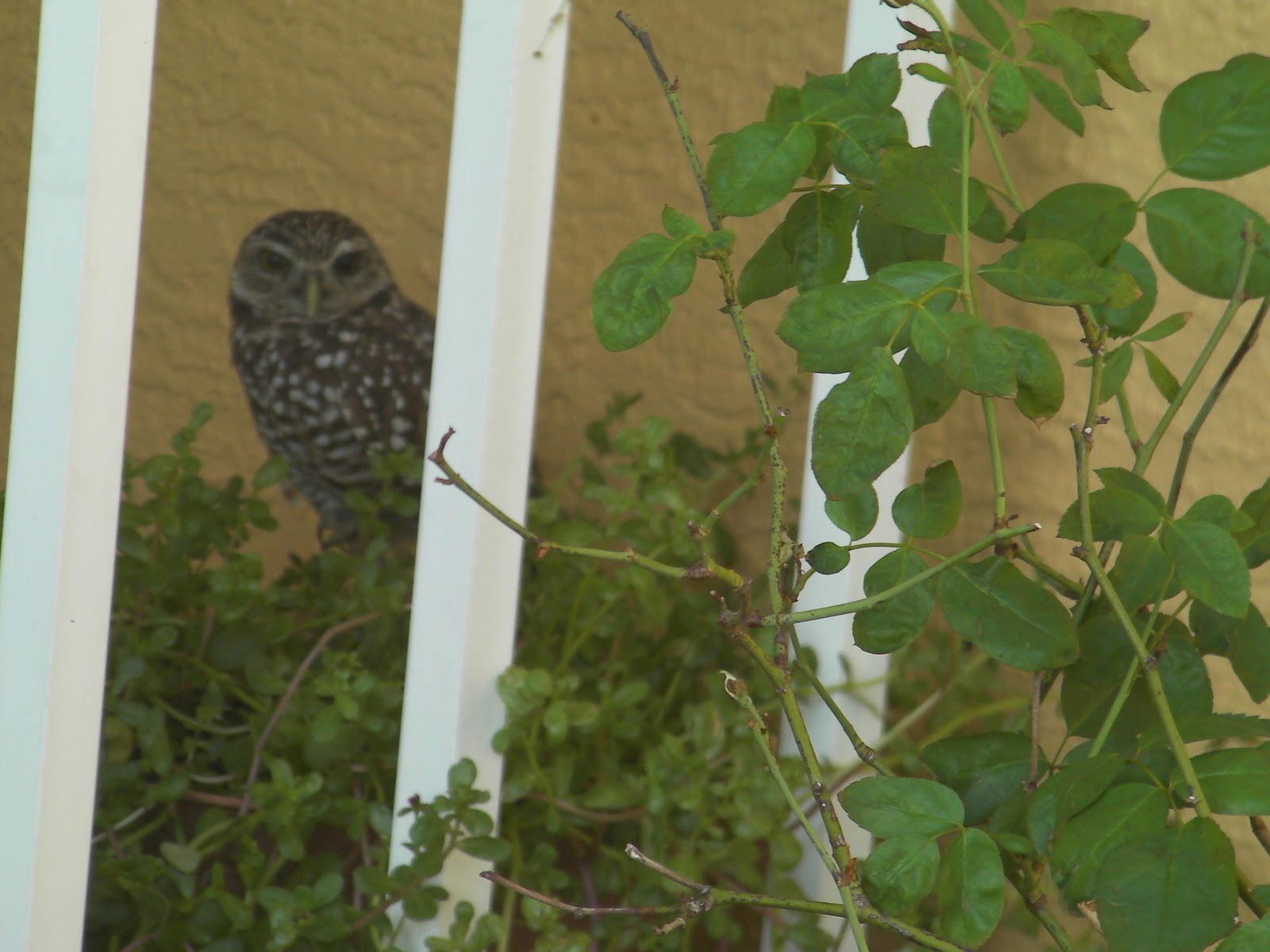 You are so lucky! Have you read "Wesley the Owl" by Stacy O'Brian. She wrote of her experience raising an owl and caring for it for 19 years. Amazing story! Hope your owl stays around for awhile.