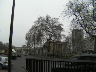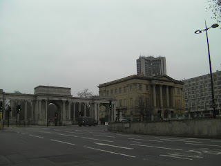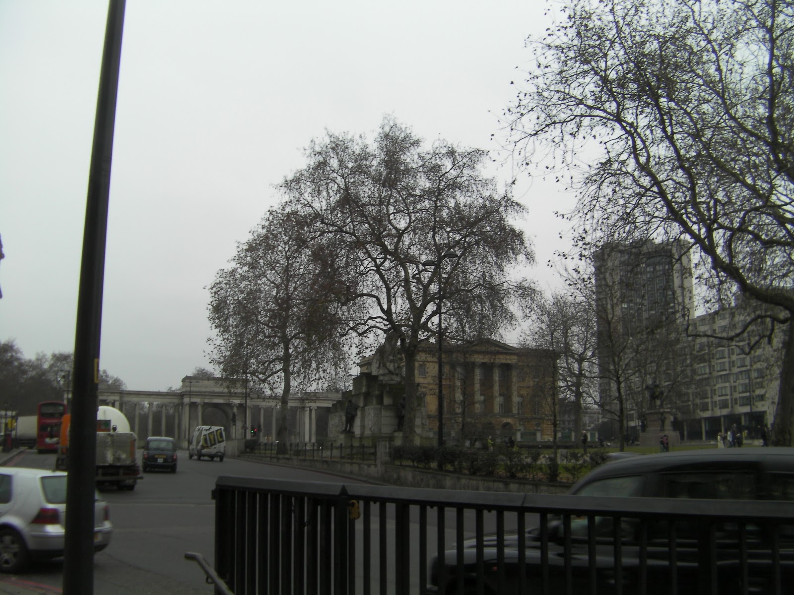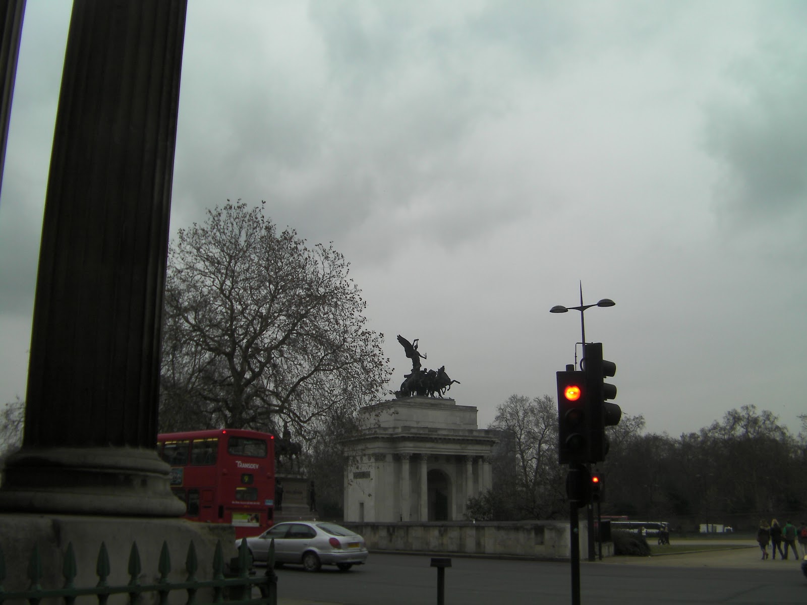 The gate at Hyde Park Corner, Apsley House and a rare break in the traffic.