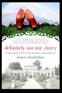 Above, the required watercress and cucumber sandwiches. Once we are all served and reassembled, it was time for the annual birthday toast to our Jane. Leading us in extolling our favorite author was Karen Doornebos, author of the new novel, Definitely Not, Mr. Darcy. Look for more information on Karen here.