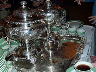 The Club’s lovely silver urns for our tea. Our favorite winter beverage was accompanied by an assortment of savory sandwiches and sweets, as shown.