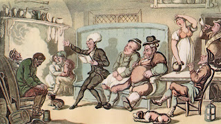 Just three sections to go before we come to the end of Dr. Syntax’s first set of adventures. As we have followed the good reverend for the last eight or nine months, we have found him continually frustrated by his inability to find the picturesque…not only does he have extended misadventures, the poor man is confronted with one jolly scene after another, few of them fulfilling the strictures of Dr. Gilpin. It’s all meant as a satire on the early nineteenth century’s obsession with wild beauty…sometimes referred to as the Romantic Movement.