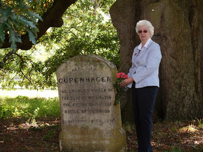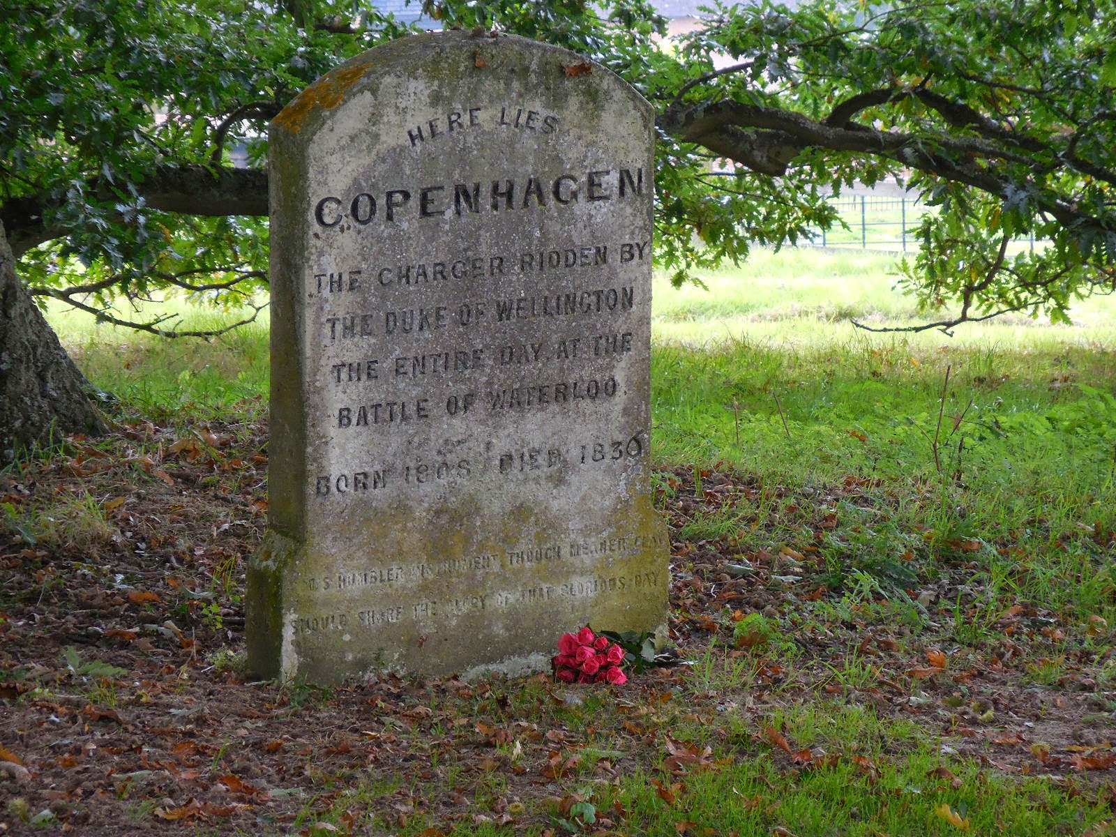 On the morning of our visit to Strratfield Saye, our tour group waited patiently for me aboard our coach as I bought a bouquet roses at a nearby Tesco’s. It was my goal to leave the floral tribute at Copenhagen’s grave during our visit.