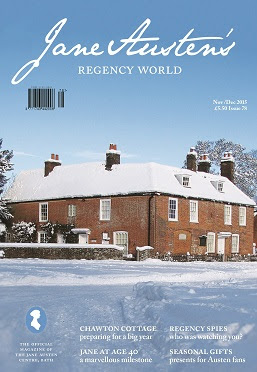 For six wonderful jaunts into the milieu of Jane Austen and the Regency, be sure you ask for an annual subscription to Jane Austen’s Regency World magazine. I never tire of reading about the news about Austen (and you might be surprised how much there is!), the events held in England and North America–and elsewhere, and many well-researched articles about Miss Austen, her family, friends, and times. To subscribe, click here.