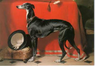 Described as ‘very friendly if there is plum-cake in the room … keen on hunting, sleepy after it, always proud and contemptuous of other dogs,’ Eos was a great favorite. So great was Prince Albert’s affection for the dog that, the following year, 1840, the Queen commissioned a portrait of her from Sir Edwin Landseer (above), the unofficial court painter, as a surprise Christmas present for Prince Albert. Poised and sleek against a rich red backdrop, the greyhound stands expectantly among some of the Prince’s personal effects – an opera hat, gloves and a cane.