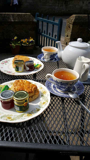 Two years ago, Diane (Perkins) Gaston and I had walked to Chatsworth House from Baslow, continuing on just over a rise for our first glimpse of Edensor, the picturesque model village built to the specifications of the 6th Duke of Devonshire with the help of Joseph Paxton. The entire village was moved over the hill from it’s original location just by the River Derwent, thus freeing up the view and leaving it idyllic as seen from the House. It is said that after being presented with a selection of designs for the houses in the village, the Duke could not make up his mind and so chose one of each style in the book. The result is that Edensor is a charming mix of designs ranging from Norman to Jacobean, Swiss-style to Italian villas. Only a few of the old buildings remained virtually untouched including parts of the old vicarage, two cottages overlooking the green, the old farmhouse which now houses the post office, shop and tea rooms, as well as the Gardener’s Cottage across the road. Today, as then, those who are fortunate enough to live in this charming village are either current or former employees of Chatsworth House.