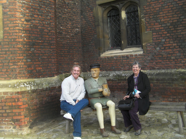 As most of you know, Hubby and I recently spent two fabulous days with Hester when we were over in January. Firstly, Hester drove us to Oatlands, now a hotel, but once the home of Frederica, Duchess of York. The three of us had tea and then Hester helped me to search the grounds and find Freddy’s pet cemetery. Below is a photo of Hubby, Hester and some guy they picked up at Hampton Court, where we went afterwards. Next day, Hester and I toured the kitchens at Windsor Castle together, had lunch and took a stroll by the river.